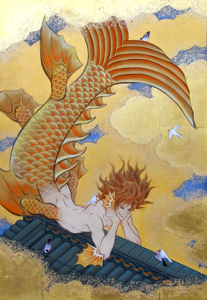 Japanese pigments, Gold leaves on silk 60.6×45.5 cm 2012